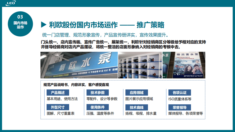 ·渠道再造,建立深度分销网络:我们协助利欧摒弃了传统工业品直销的单一模式,建立了一级经销商覆盖全省,二级经销商覆盖地市的黄金渠道体系。并制定了详细的经销商分级管理、激励与支持政策(A/B/C类经销商差异化支持),将松散的渠道联盟,转变为紧密协作的利益共同体,实现了市场的快速渗透和精细化耕作。